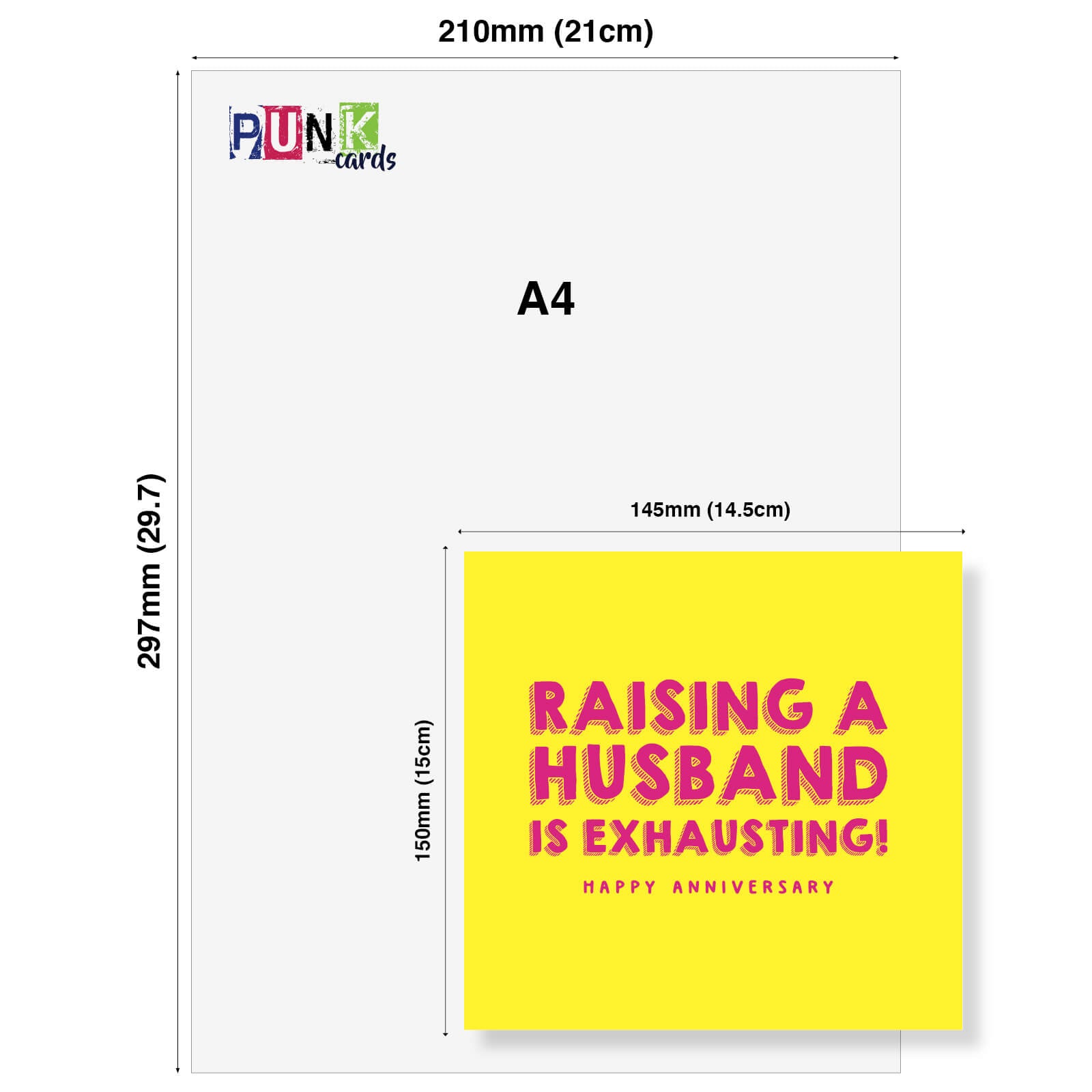 Raising a Husband Is Exhausting - Because let’s face it — sometimes he’s just a big kid. This bright and hilarious anniversary card says what everyone’s thinking. A funny way to celebrate another year of love, laughs, and a very tired wife!