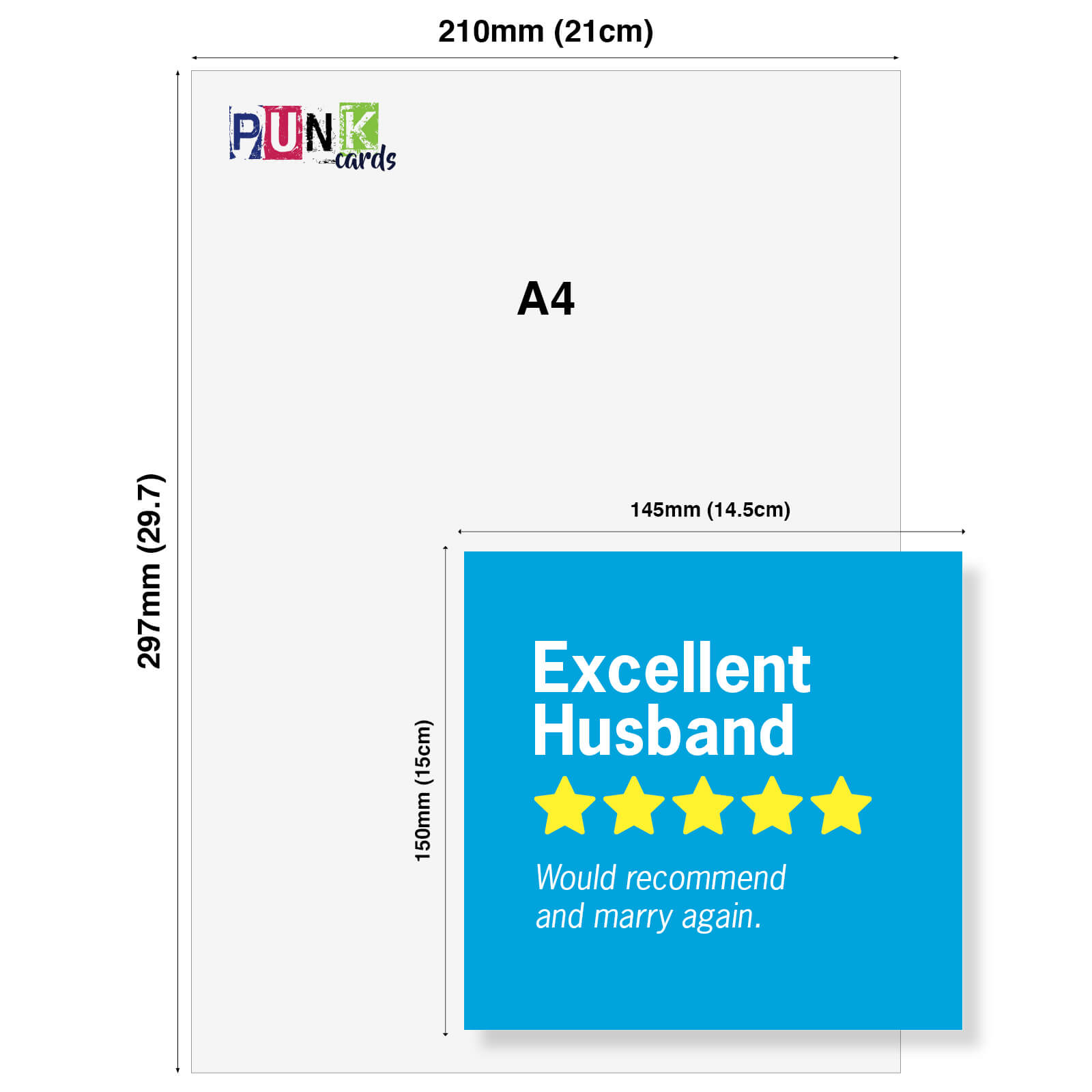 Give your hubby the glowing review he deserves with this cheeky and charming card. Featuring a bold 5-star rating and the ultimate compliment: *"Would recommend and marry again."* It's perfect for anniversaries, birthdays, or just reminding him he’s doing a smashing job at being your better half. Bright, playful, and guaranteed to make him smile—unlike the DIY job he still hasn’t finished.
