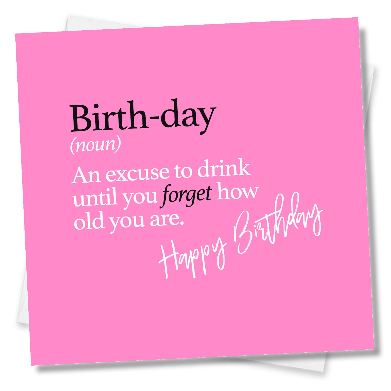 Birth-day (noun) An excuse to drink until you forget how old you are.