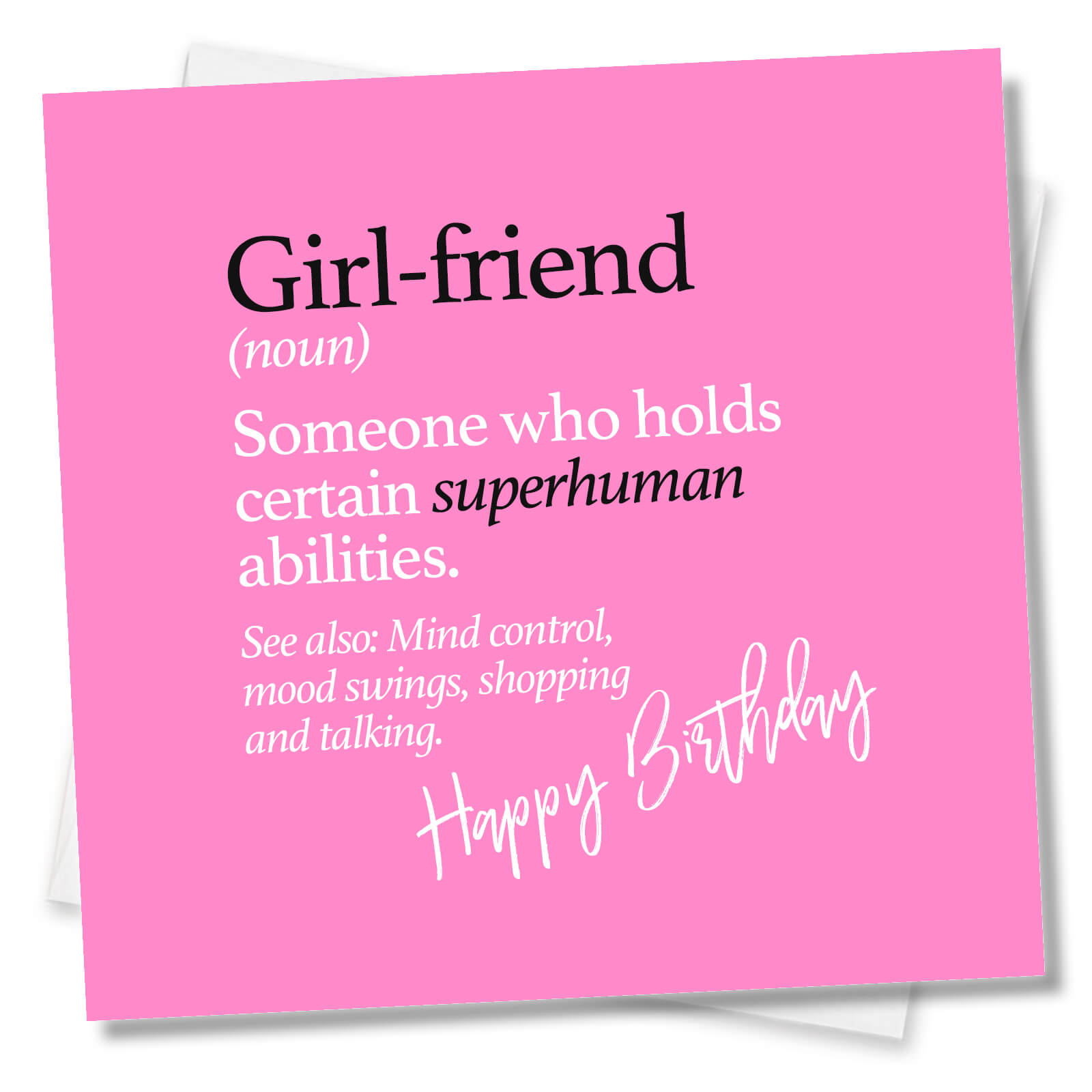 Girl-friend (noun) Someone who holds certain superhuman abilities. See also: Mind control, mood swings, shopping and talking.