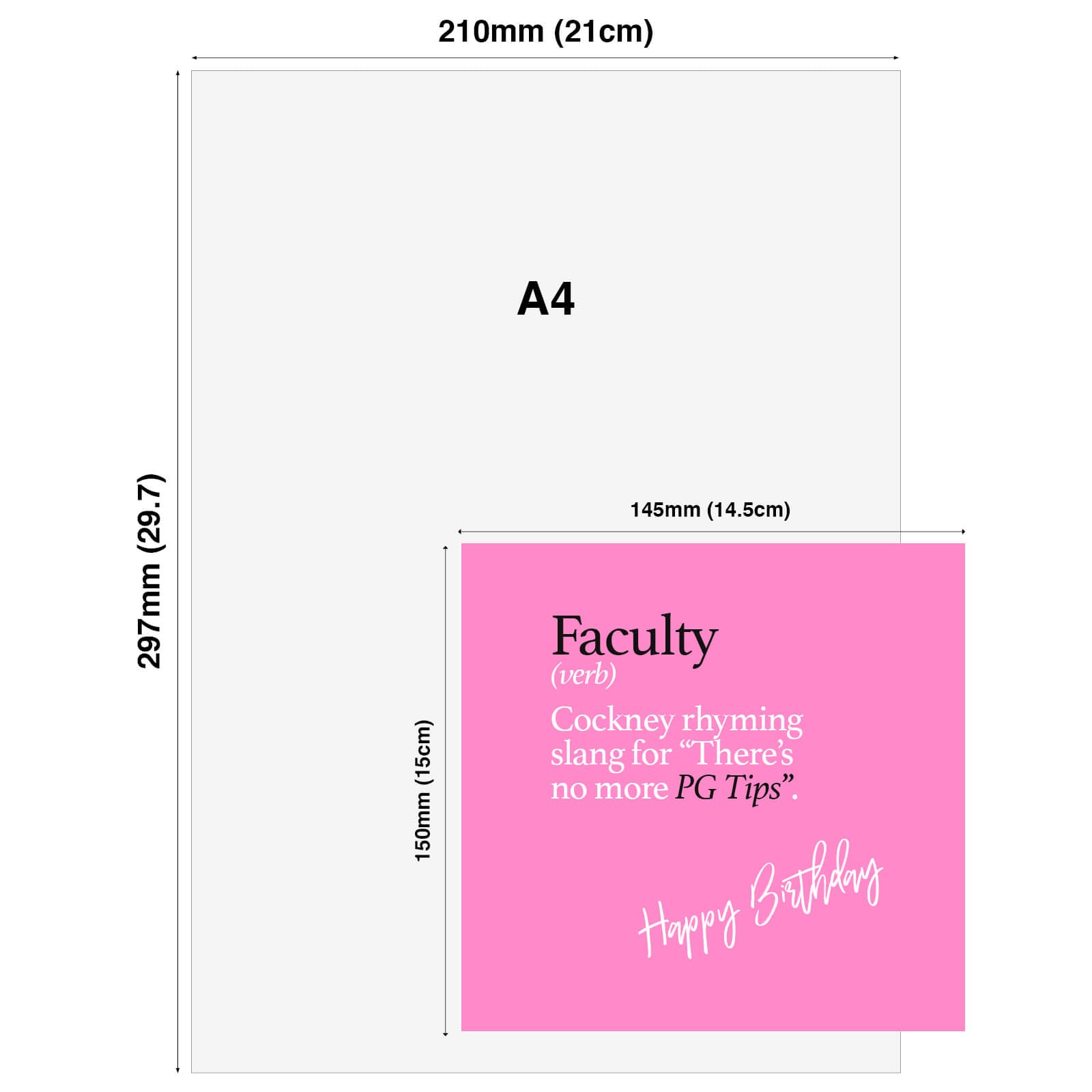 Faculty (verb) Cockney rhyming slang for “There’s no more PG Tips.