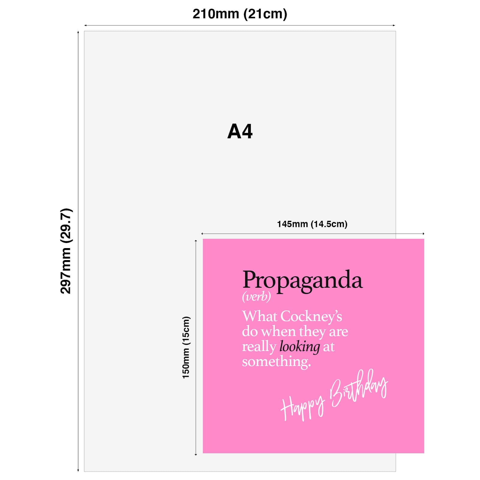Propaganda (verb) What Cockney’s do when they are really looking at something.