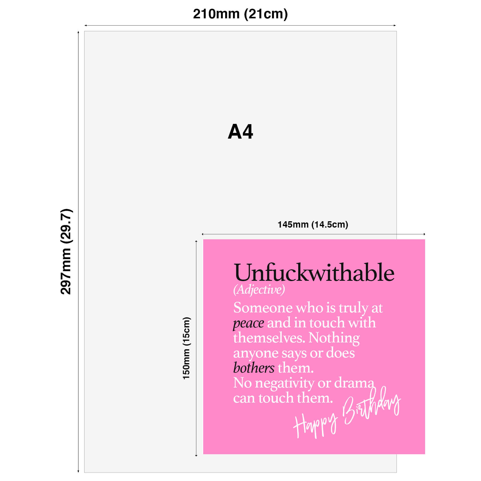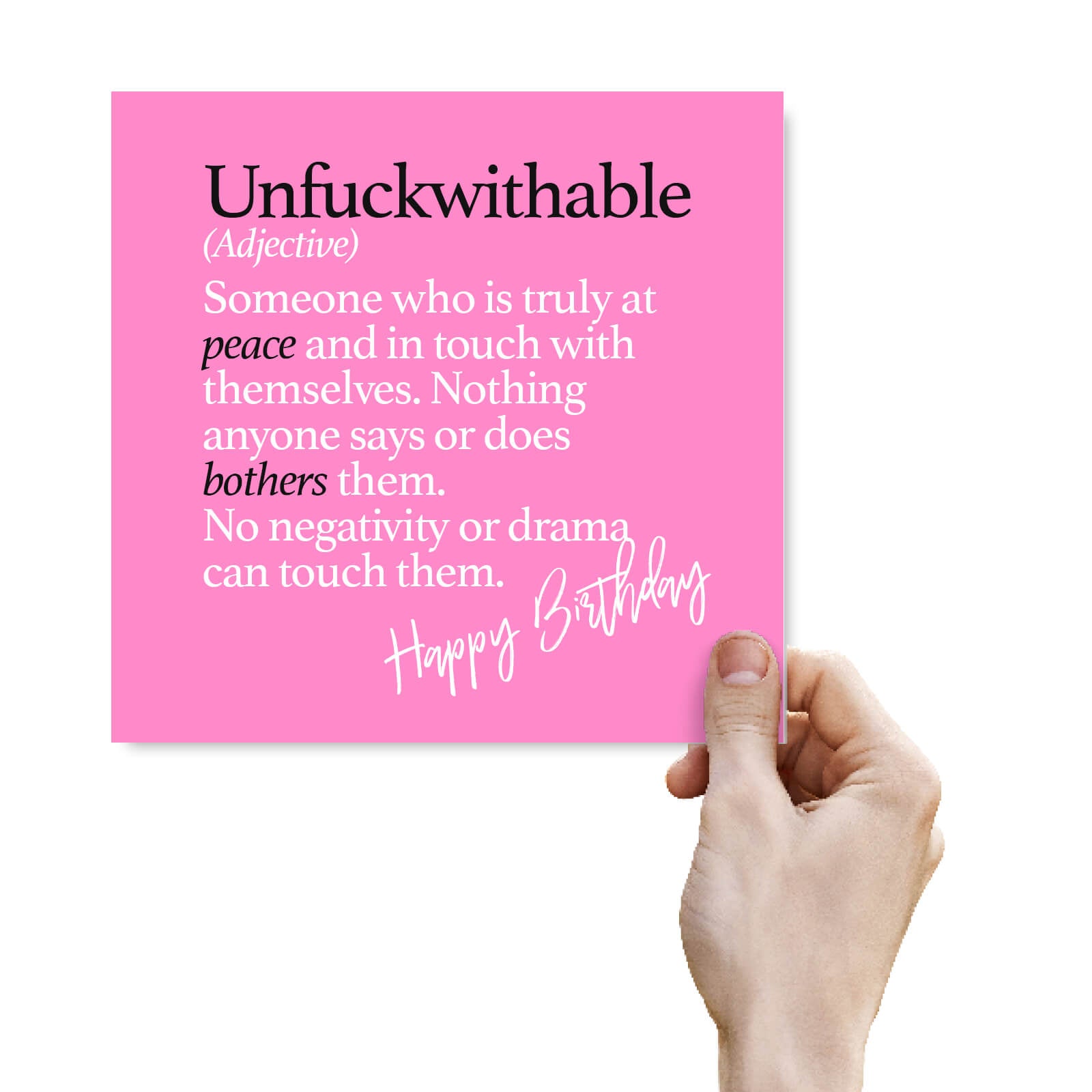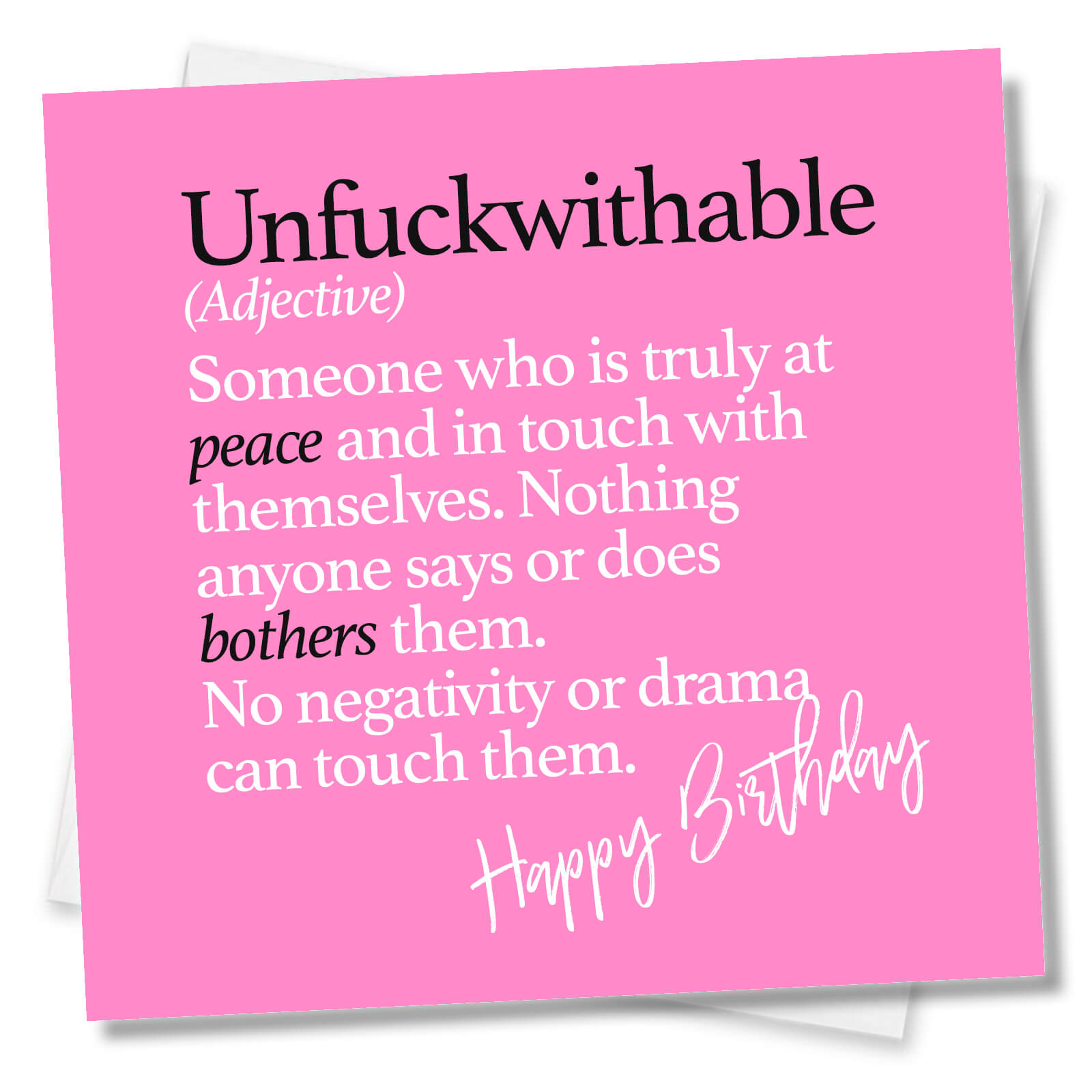 Unfuckwithable (Adjective) Someone who is truly at peace and in touch with themselves. Nothing anyone says or does bothers them. No negativity or drama can touch them.