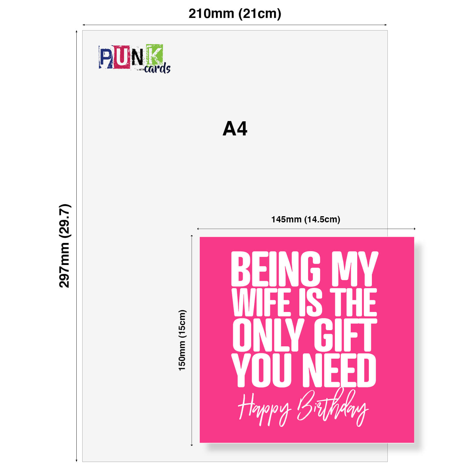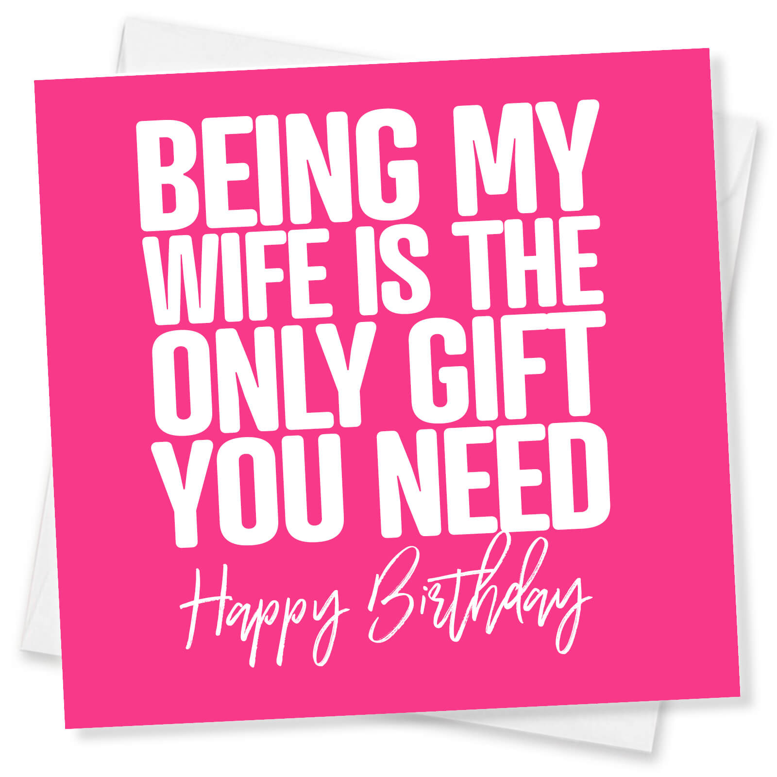 Why buy presents when the best gift is already by his side? A witty, bright card for the birthday wife who deserves a little sass with her sparkle.