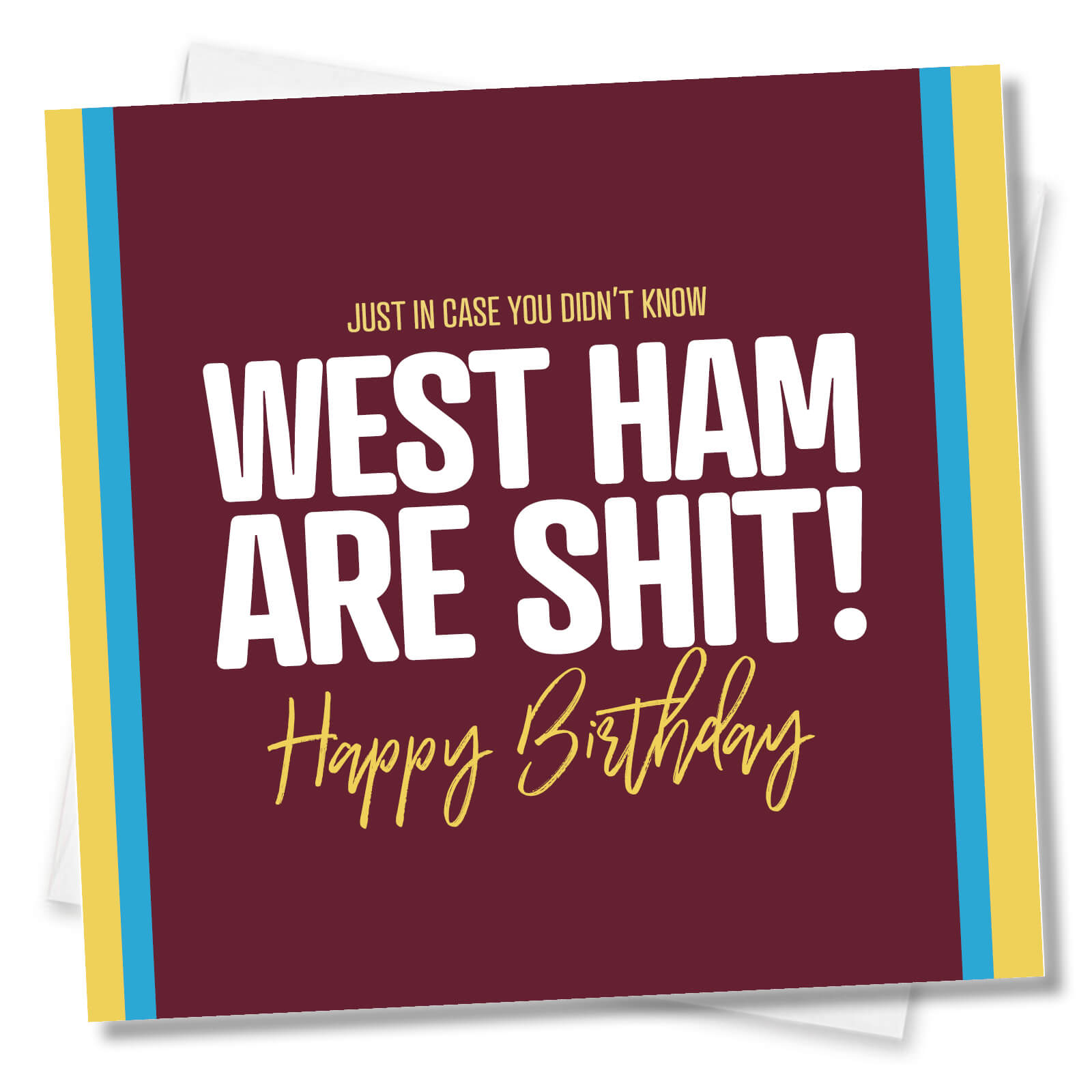 Perfect for winding up a Hammers fan who won't shut up about “massive” status. A claret and blue belter of a birthday burn.