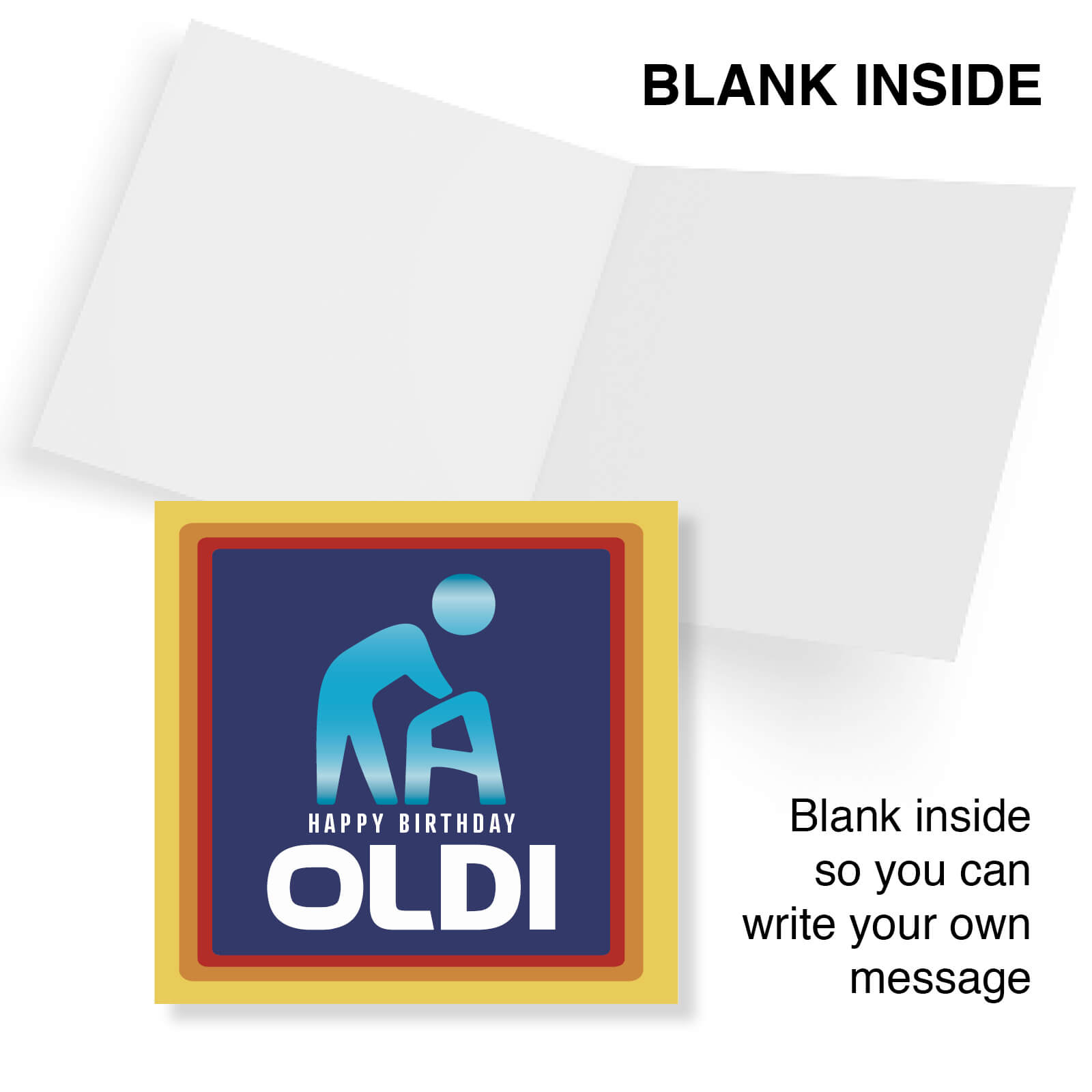 A hilarious birthday card for the gracefully aging! This “OLDI” card features a bold design with a figure leaning on a zimmer frame, making it the perfect choice for roasting friends or loved ones as they turn another year older. Guaranteed to get a laugh!