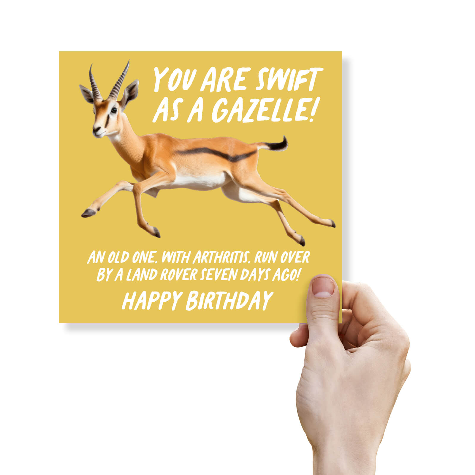 Sure, you might *feel* fast… but this hilarious card paints a more “realistic” picture. A great birthday card for someone who’s still got the moves (ish). Perfect for: Anyone who loves animal humour and a good roast.