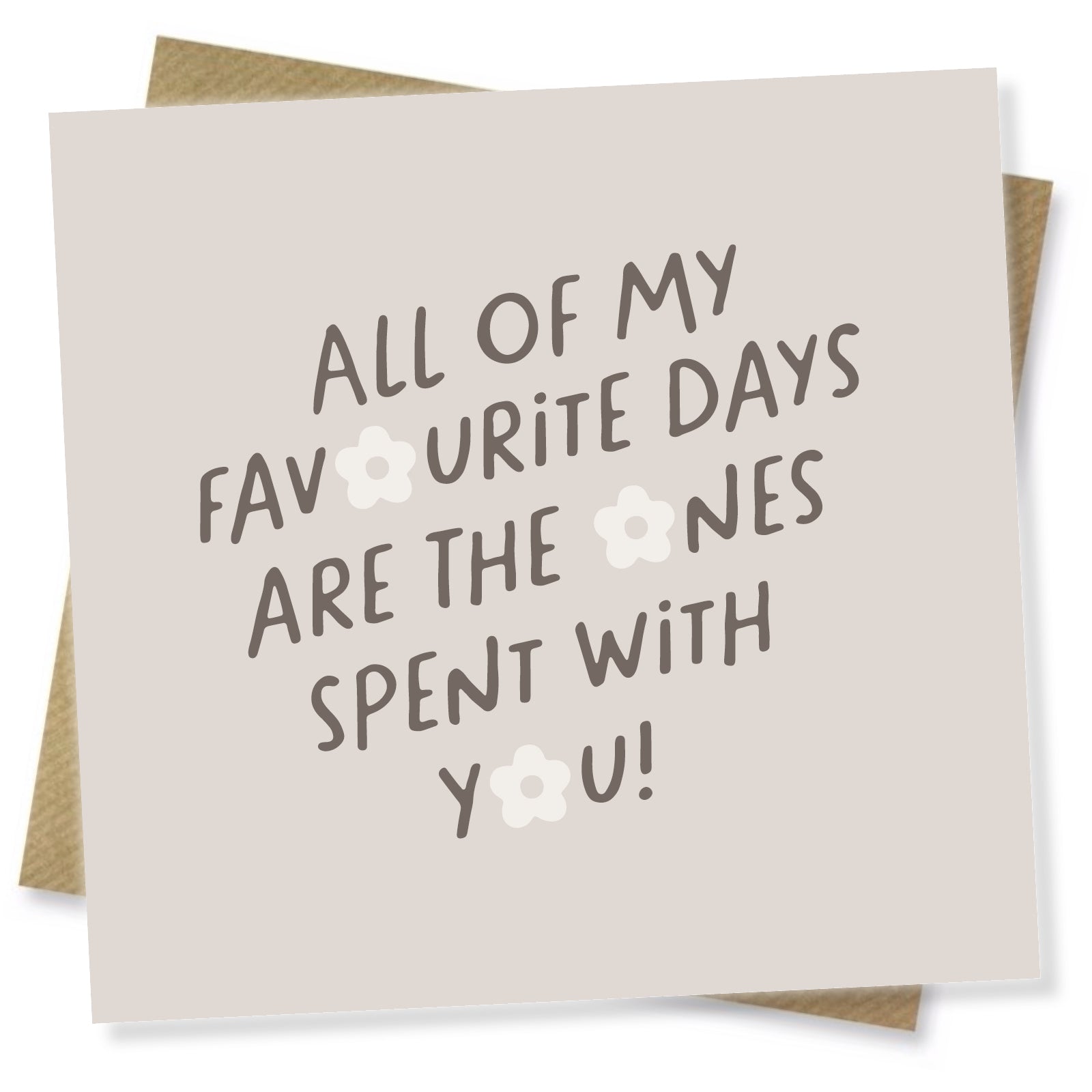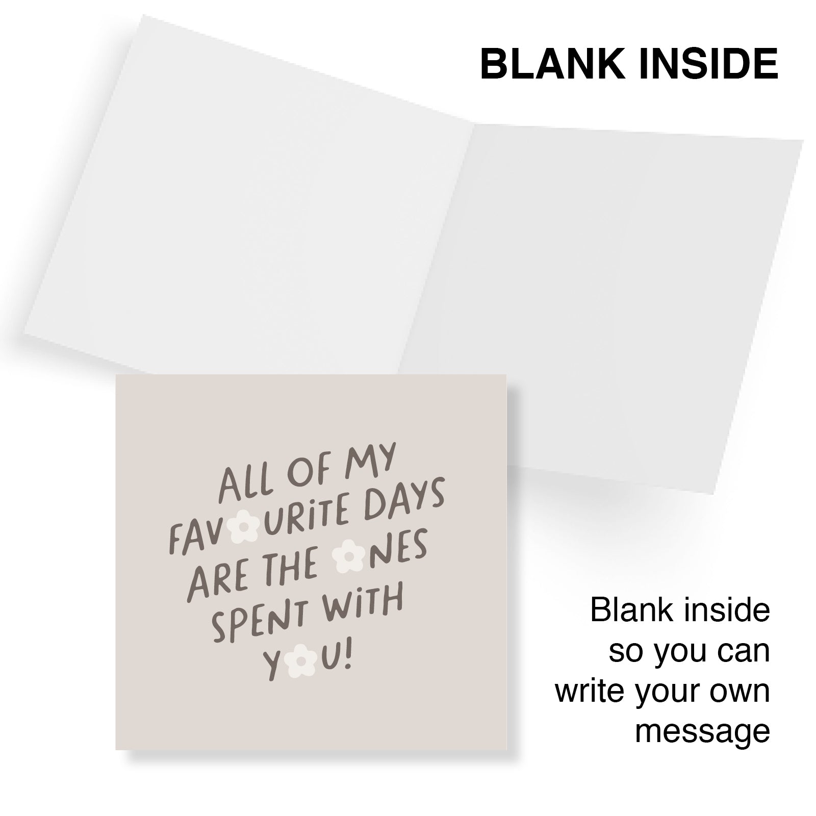 Subtle, sweet, and utterly romantic. This charming message is for the person you never get tired of spending time with. A wonderful choice for anniversaries, special dates, or just to show love out of the blue.
