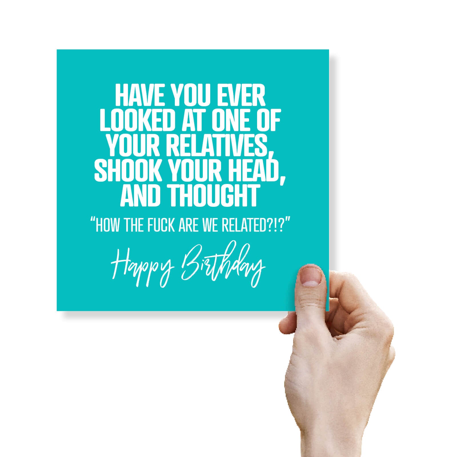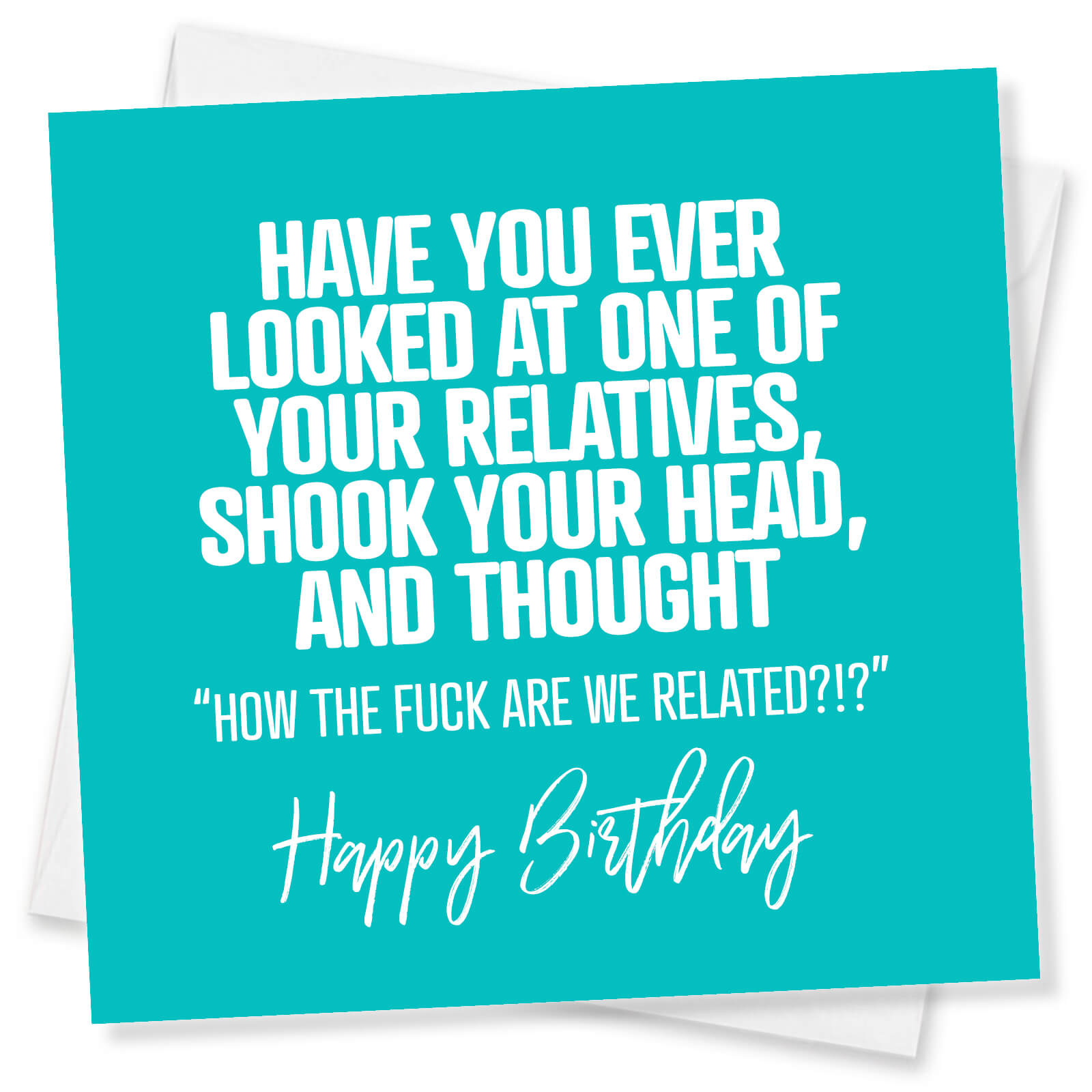 How Are We Related? Family gatherings just got hilariously honest! Ideal for the relative who never seems quite normal, this card is perfect for acknowledging those quirky family moments. With a blunt, relatable punchline, it captures the humour of family confusion brilliantly. Give this to someone who shares your bewilderment—guaranteed laughs and knowing nods.