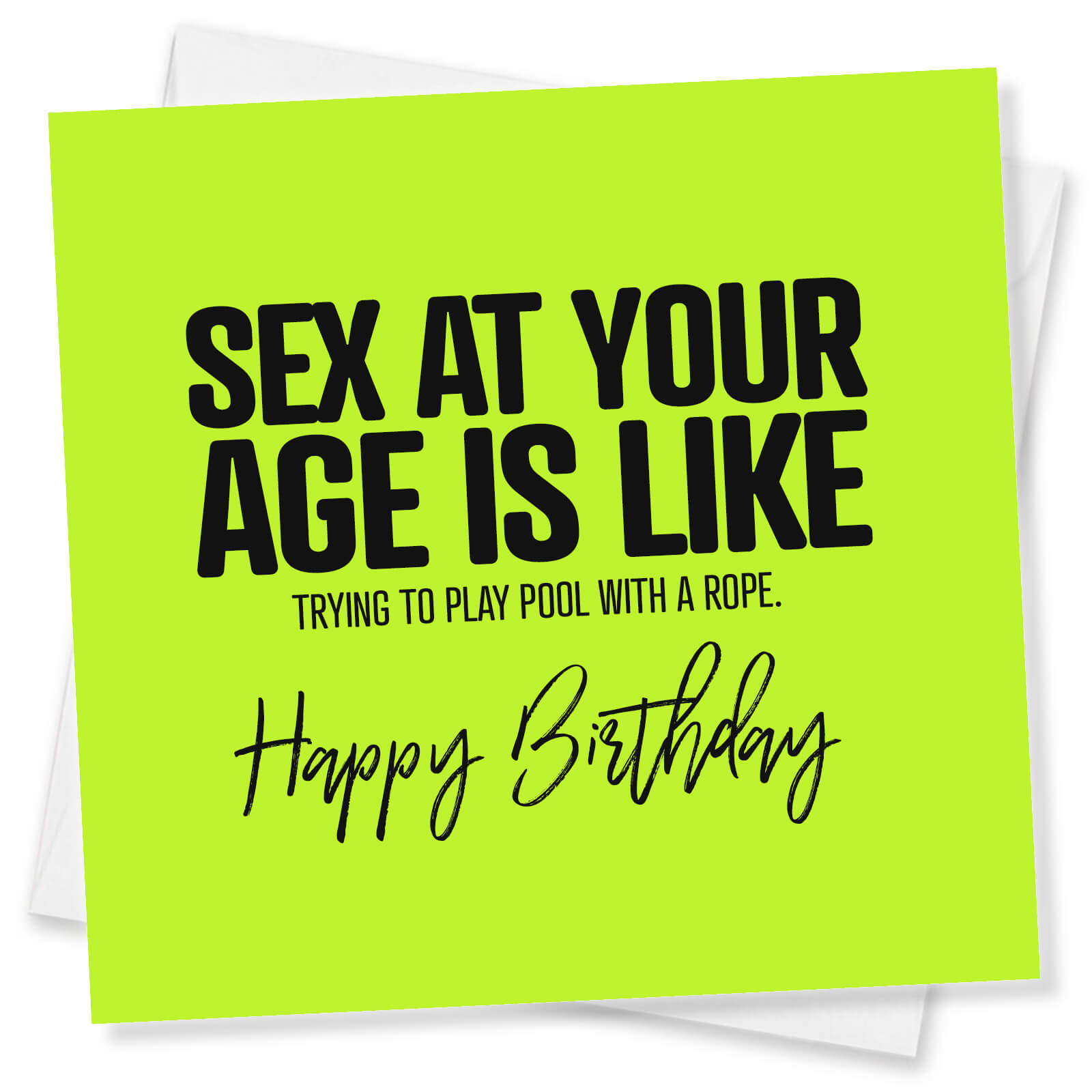 Sex at Your Age" Card. Combining cheeky insult with playful teasing, this birthday card delivers a rude, humorous jab about ageing. Vibrantly coloured and instantly attention-grabbing, it's a perfect pick for that older friend or family member who can take a joke about their declining prowess. It promises hearty laughs and slightly bruised egos.
