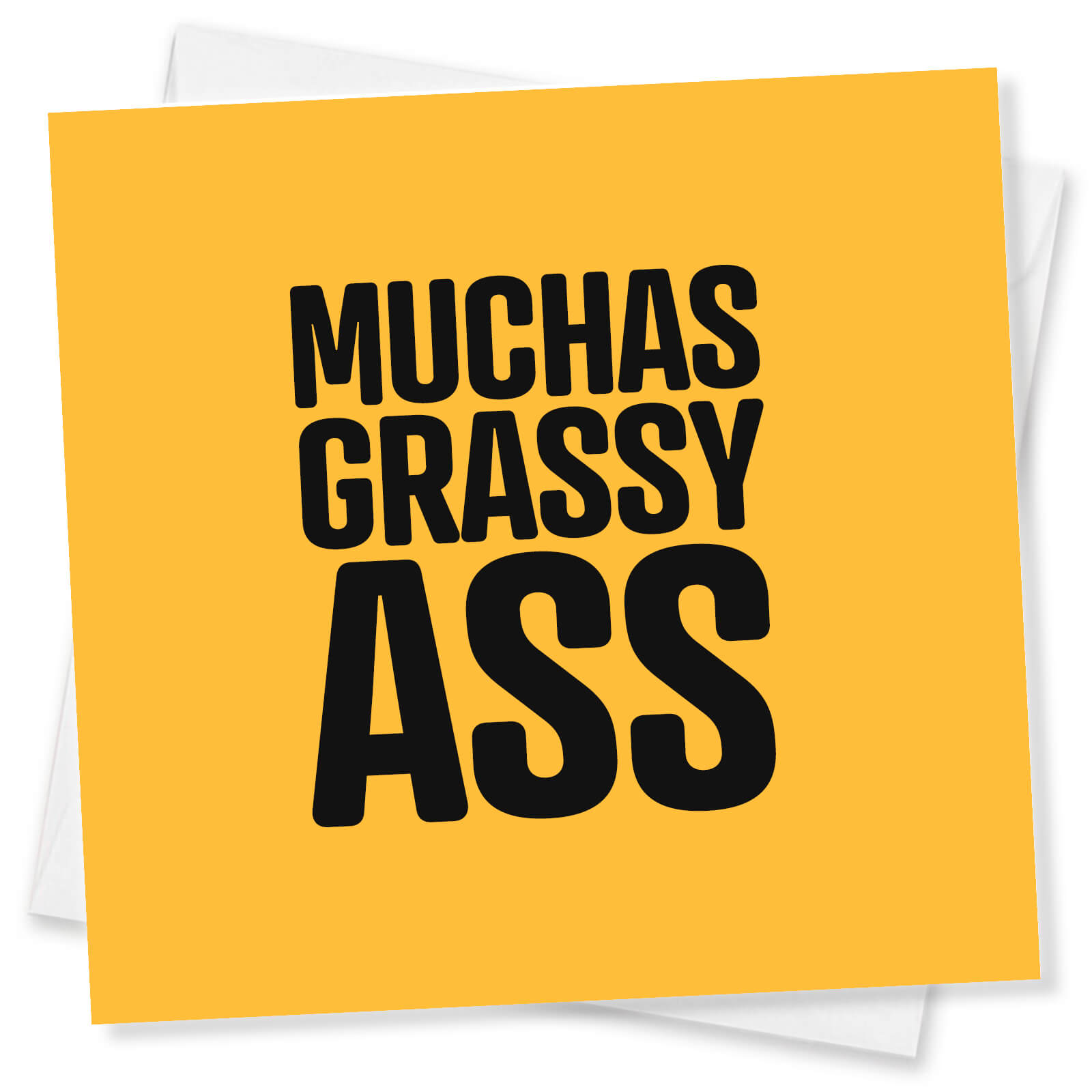 "Muchas Grassy Ass" Funny Thank You Card. Send a cheeky thank you with this bold and hilarious card. “Muchas Grassy Ass” is our playful twist on a classic phrase – perfect for someone who deserves a laugh *and* your gratitude. Whether it's for a mate, colleague, or teacher, this card hits the sweet spot between humour and appreciation. Perfect for: Funny thank you card, colleague leaving card, end-of-term teacher gift.