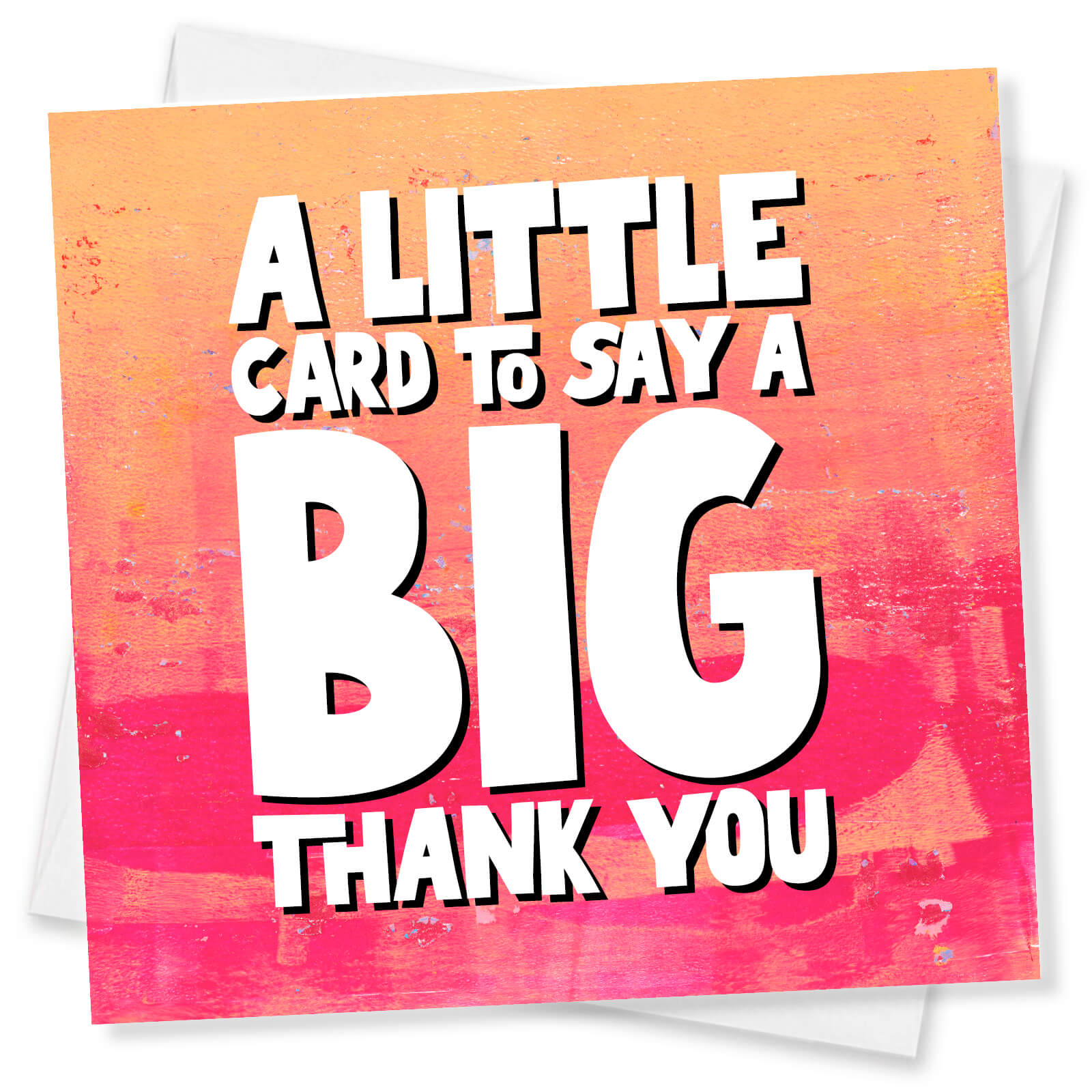 A Little Card to Say a BIG Thank You Bold, playful and straight to the point. This card may be small in size, but it delivers a HUGE message of thanks in classic comic-book style on a vibrant orange-pink backdrop. **Perfect for: Teachers, team members, or a big-hearted thank you moment.