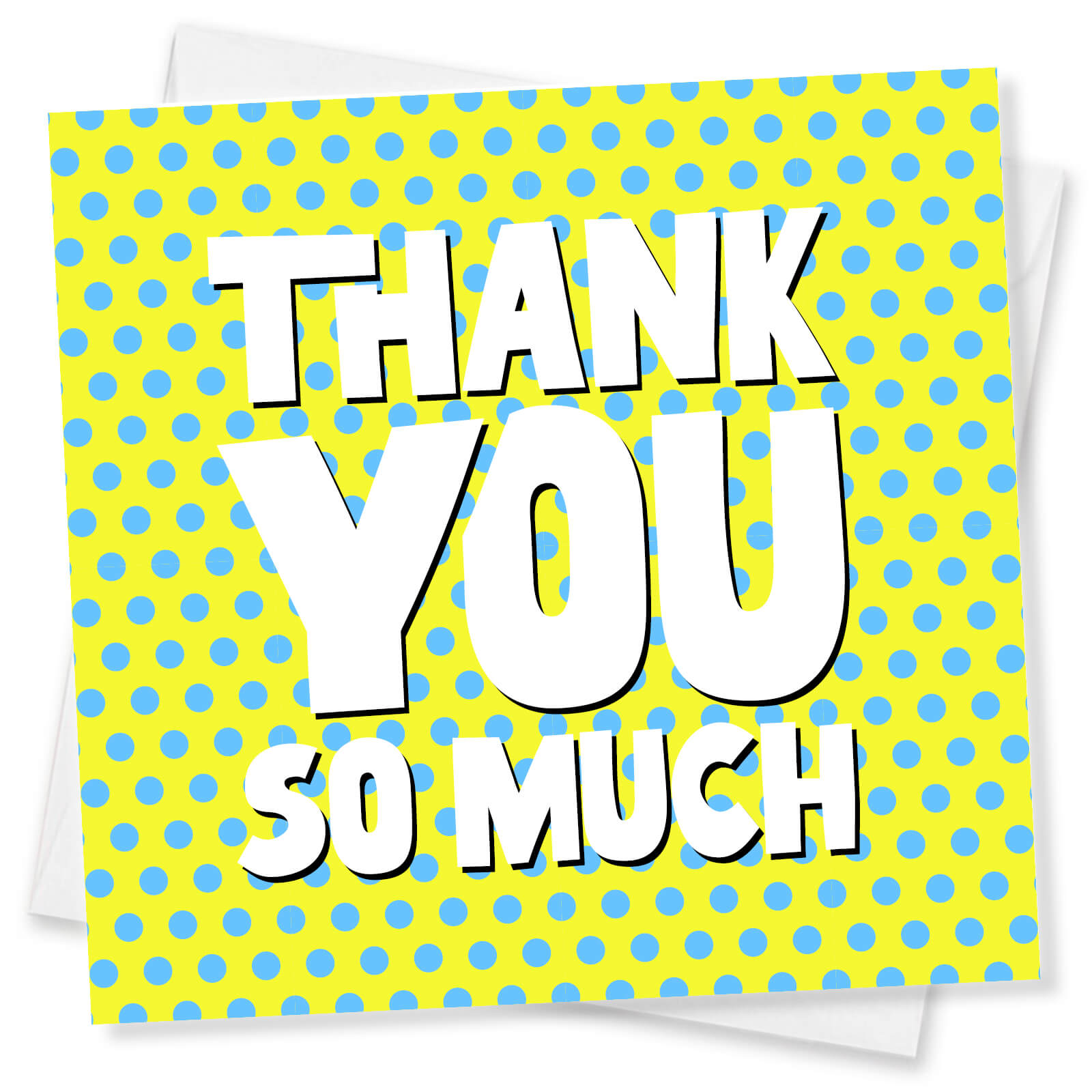 Thank You So Much” Retro Pop Card Pop art meets gratitude! Bright yellow and blue polka dots make this thank you card seriously fun, with bold text that makes your appreciation pop. Perfect for: Kids, coworkers, or upbeat, bubbly personalities.