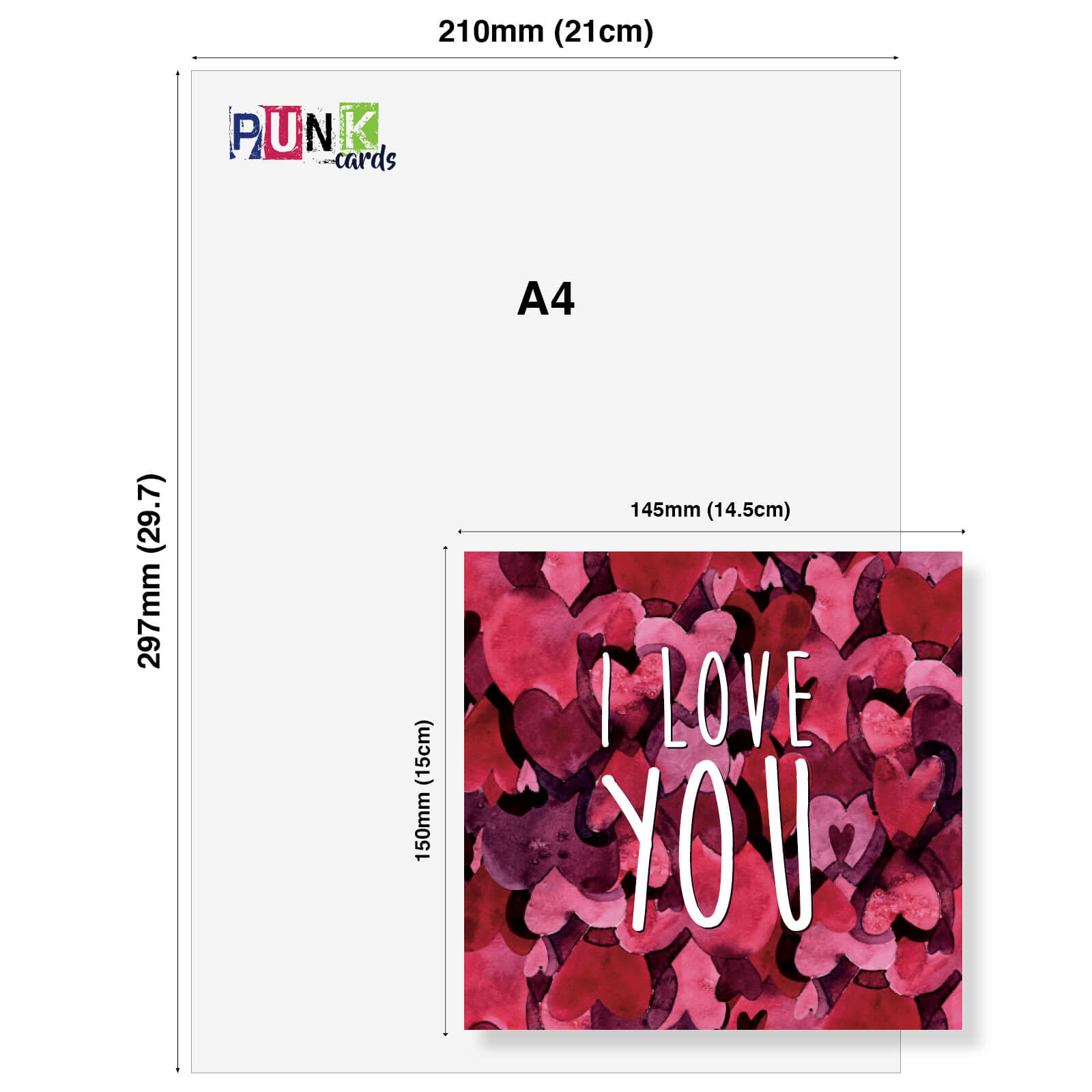 Straightforward and sincere — say the three magic words with a card that’s bursting with deep reds and heartfelt charm. Perfect for: Valentine’s, anniversaries, or the one you love every day.