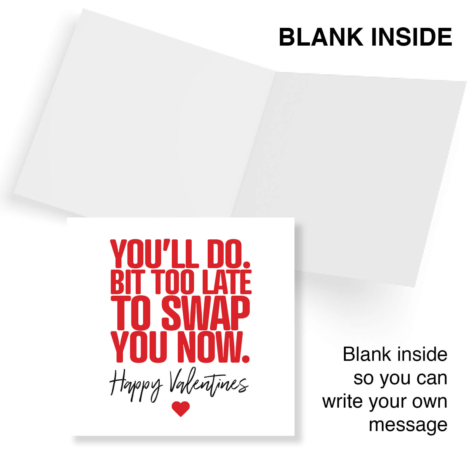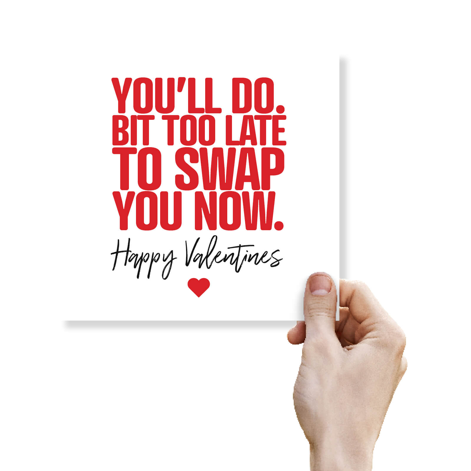 For the romantically resigned – this Valentine’s card delivers dry humour with a splash of sarcasm. Ideal for long-term relationships with zero filter.