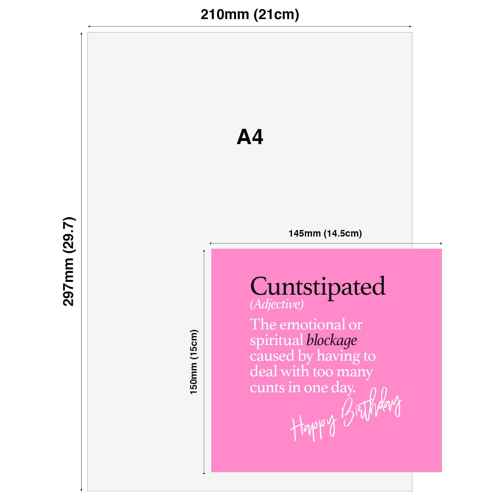 Cuntstipated (Adjective)The emotional or spiritual blockage caused by having to deal with too many cunts in one day.