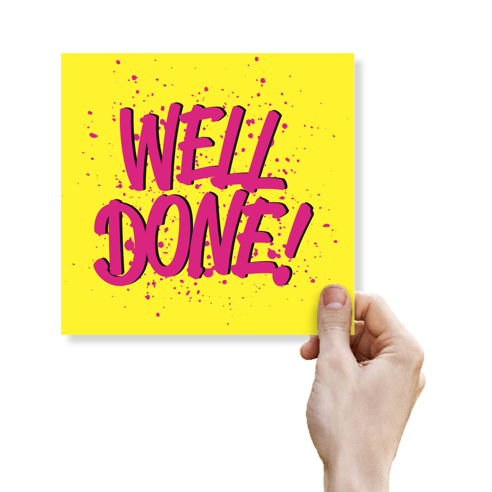 Well Done Card, A big, bold ‘Well Done!’ in neon colours – ideal for celebrating a success, smashing a milestone, or giving someone a proper pat on the back.