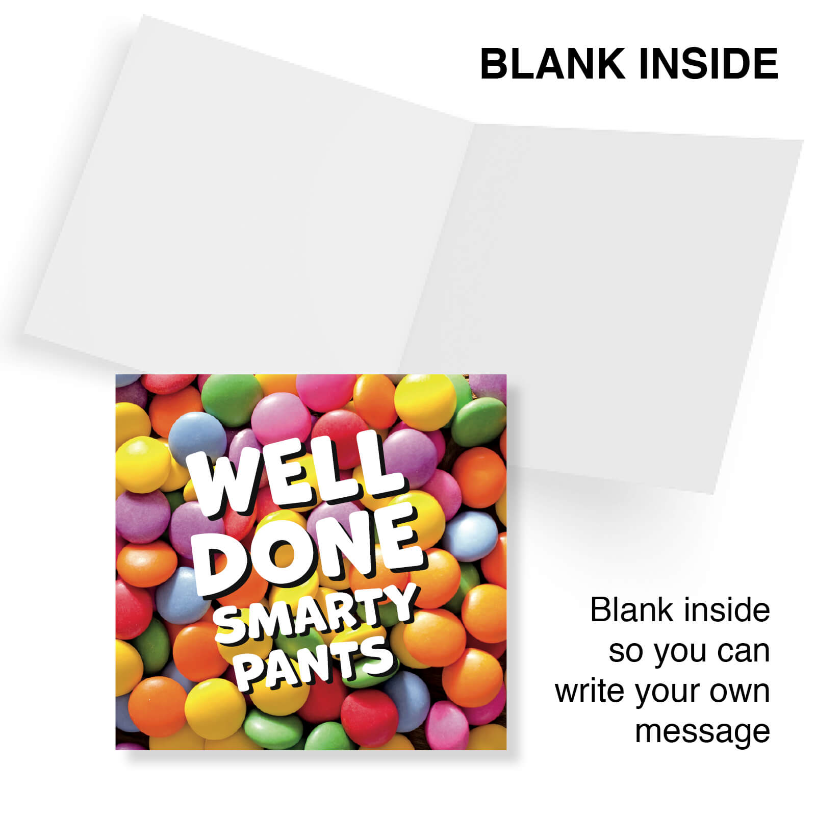 Well Done Smarty Pants Card - Say "Well Done" in the most fun way possible! This colourful card is bursting with Smarties-inspired joy, perfect for congratulating someone in a playful and cheerful way. Whether for exams, promotions, or a big win, it’s a sweet way to celebrate success. Blank inside for your message.